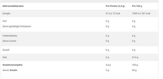 Kreatin, α-Methylguanidoessigsäure, ist eine stickstoffhaltige organische Säure, die in den Muskeln und Nervenzellen einiger lebender Organismen vorkommt. Es kann sowohl natürlich als auch künstlich als Nahrungsergänzungsmittel gewonnen werden. Es ist ein Molekül, das aus den Aminosäuren Arginin, Methionin und Glycin besteht. Es wird auf natürliche Weise in Leber, Bauchspeicheldrüse und Nieren aus den Aminosäuren Arginin, Glycin und Methionin mit einer Geschwindigkeit von einem Gramm Kreatin pro Tag synthetisiert.2 Es stellt einen unmittelbaren und direkten Vektor für den Transport von ATP und die Energieversorgung der Muskelmyofibrillen dar.